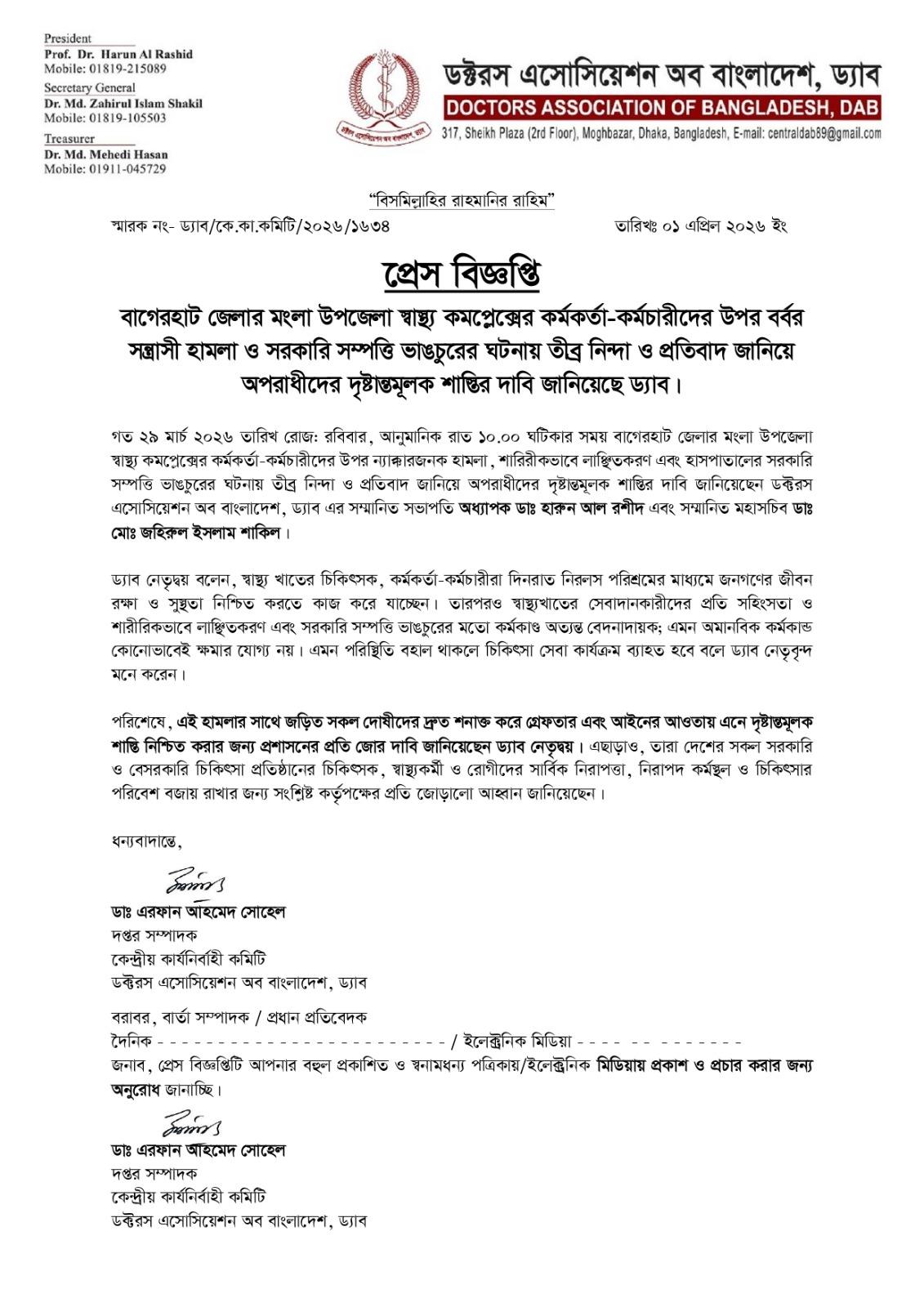 স্বাস্থ্য অধিদপ্তর এর পরিচালক প্রশাসন হিসেবে নিয়োগ পেলেন : অধ্যাপক ডা: জালালউদ্দিন মোহাম্মদ রুমি। স্বাস্থ্য অধিদপ্তর এর পরিচালক প্রশাসন হিসেবে নিয়োগ পেয়েছেন অধ্যাপক ডা: জালালউদ্দিন মোহাম্মদ রুমি।তিনি নিউরোসাইন্স ইন্সটিটিউট এর নিউরো সার্জারী বিভাগের অধ্যাপক হিসেবে কর্মরত ছিলেন। আজ ১০ মার্চ, ২০২৬ ইং, স্বাস্থ্য ও পরিবার কল্যাণ মন্ত্রণালয় এ সংক্রান্ত একটি বিস্তারিত...
